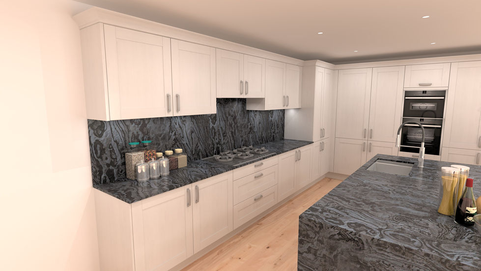 One recent project features a large open plan kitchen with a hidden entrance to the utility room, tall larder storage cabinets, and elegant waterfall worktop panels surrounding the island. Explore the perfect blend of functionality and style designed to elevate your living space.